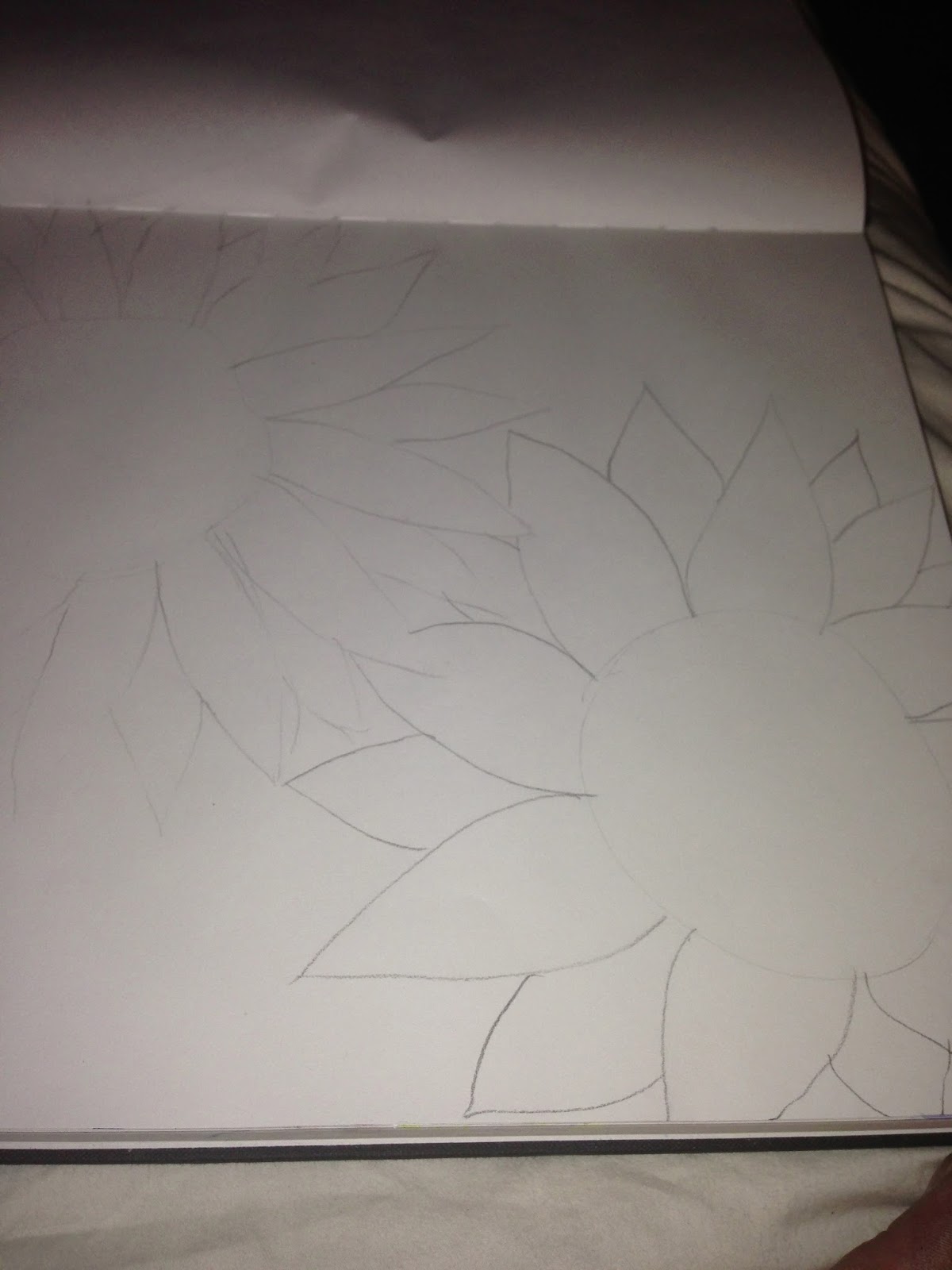 SO I started with drawing some circles - which with sunflowers on my mind quickly came into sunflowers.
